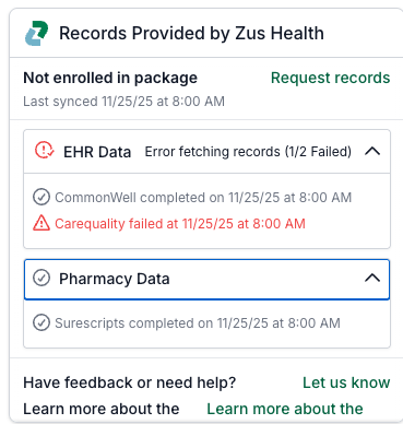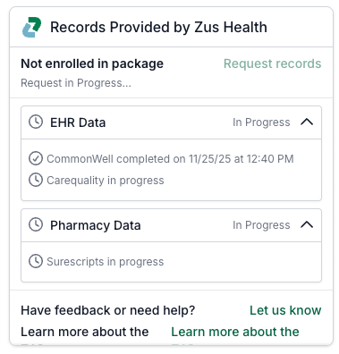 We’ve expanded the level of detail available in the Patient Overview to give users clearer visibility into external record retrieval activity. This update provides more granular retrieval statuses, improved behavior for collapsible groups, and a refined layout making it easier to understand what has happened, what is in progress, and where deeper investigation may be needed.