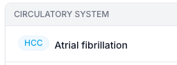 Conditiontable. This information is not exposed in the lens-based condition tables such aslens_snomed_condition. - Updated ZAP display: In the ZAP Conditions list, the HCC indicator (pill) is shown only for v28 HCCs, aligning the UI with the current CMS model and avoiding confusion when multiple HCC versions exist for the same clinical condition.