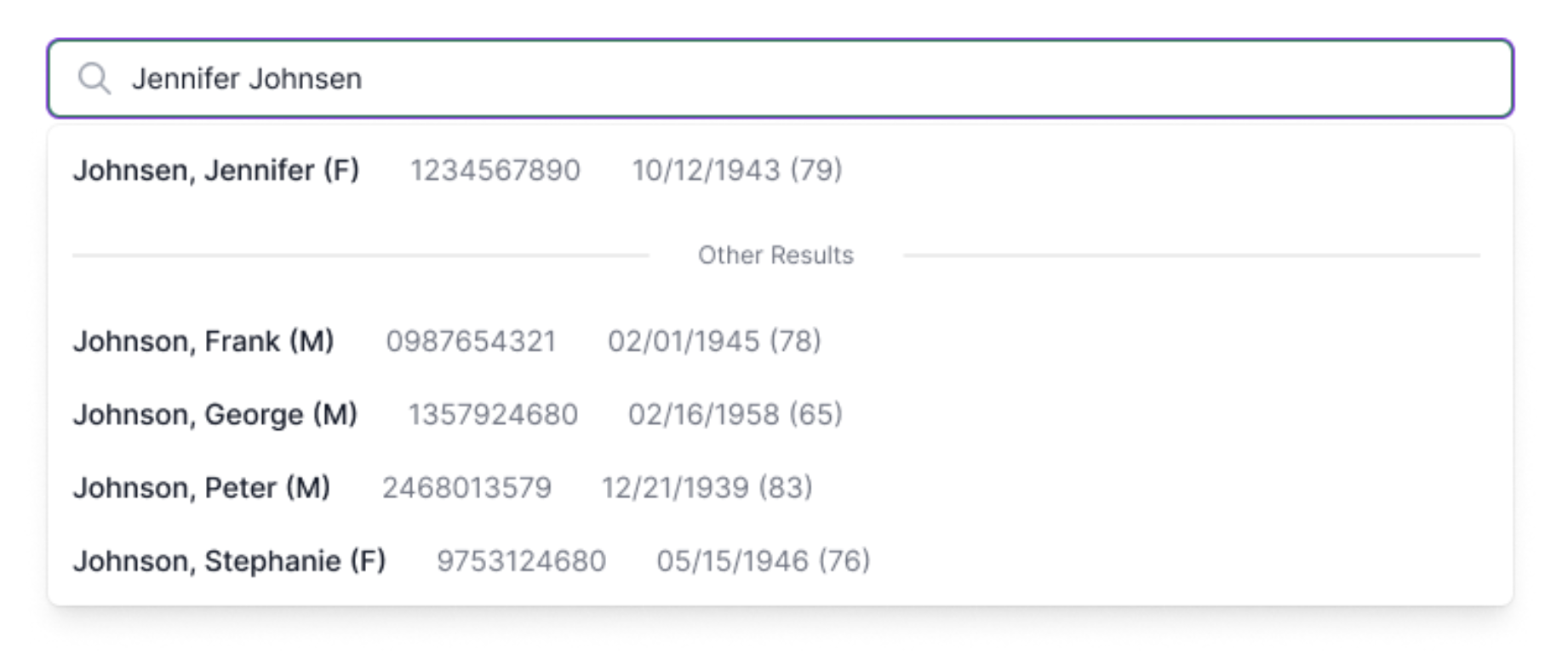 We’ve refined the patient search experience to make it faster to find the right person. Now, when you enter a name, any exact matches will appear at the top of the results list, separated from similar names below.