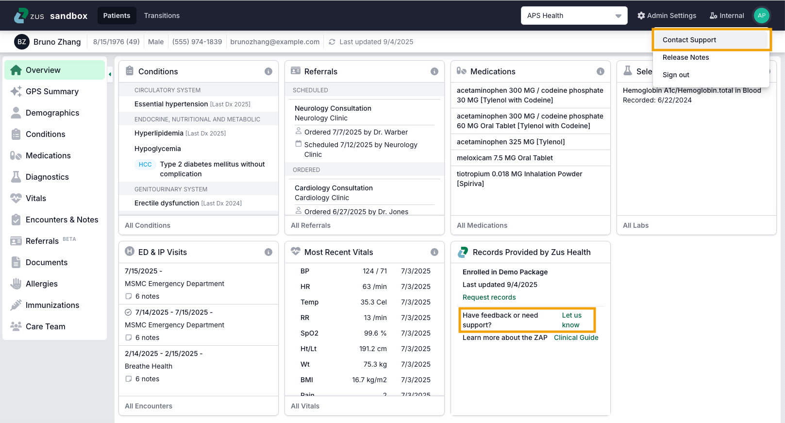 - Support request context - where the support request was made. This might be the Zus web application, an EMR integration, or the ZAP embedded in a client application.