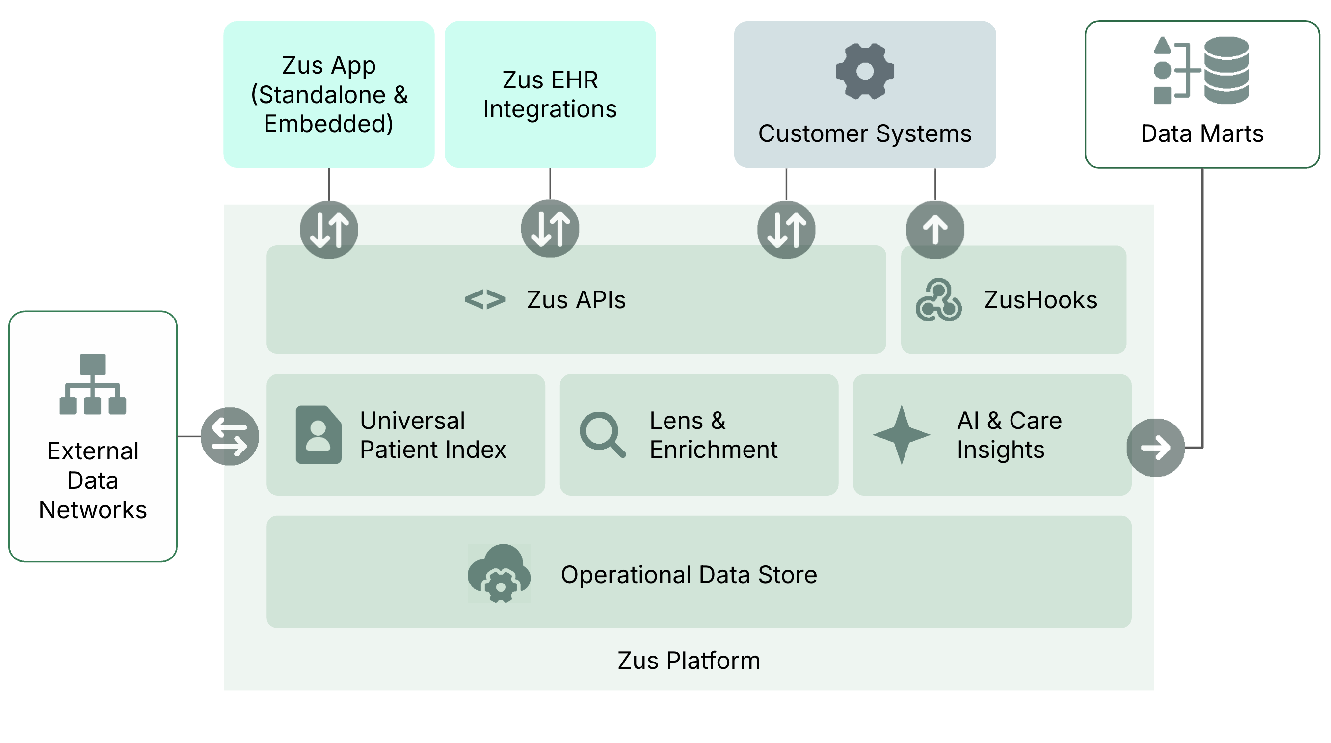 - A Data Mart for real time export of rectangularized data from Zus for pop health analytics purposes