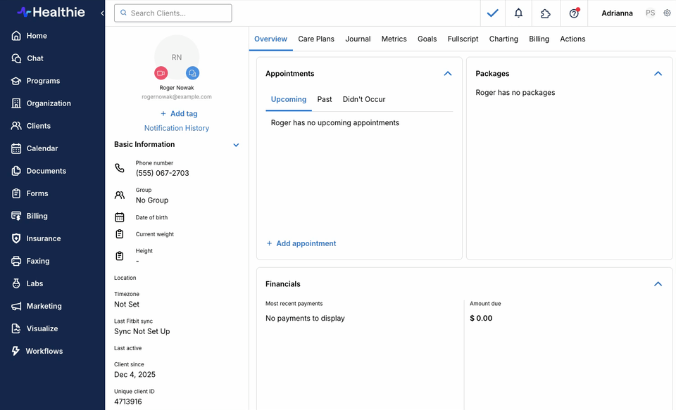 Observations | A1c, Body fat, Weight, and Waist circumference pulled from Healthie metric entries |